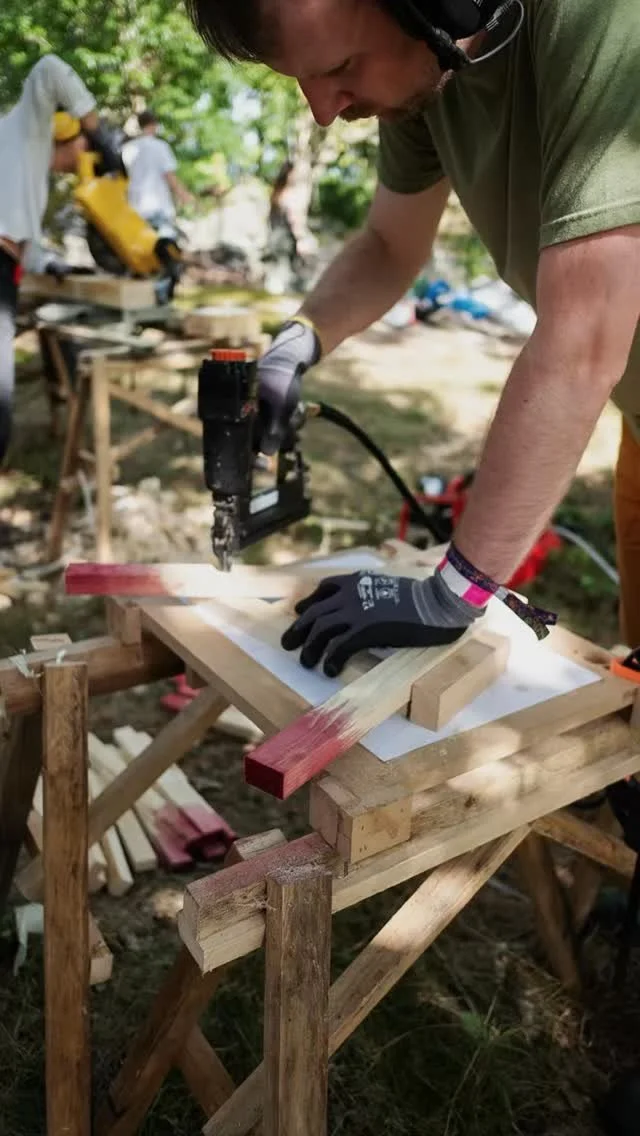 We set up a small factory line on the island Tjärö and produced 200 chairs in the two days leading up to the festival. Chairs seem to be the go to object to work with for a lot of designers and getting your design picked up and mass-produced is for many a dream. We turned this into a fever dream, a loving parody of the design industry and ourselves in it.